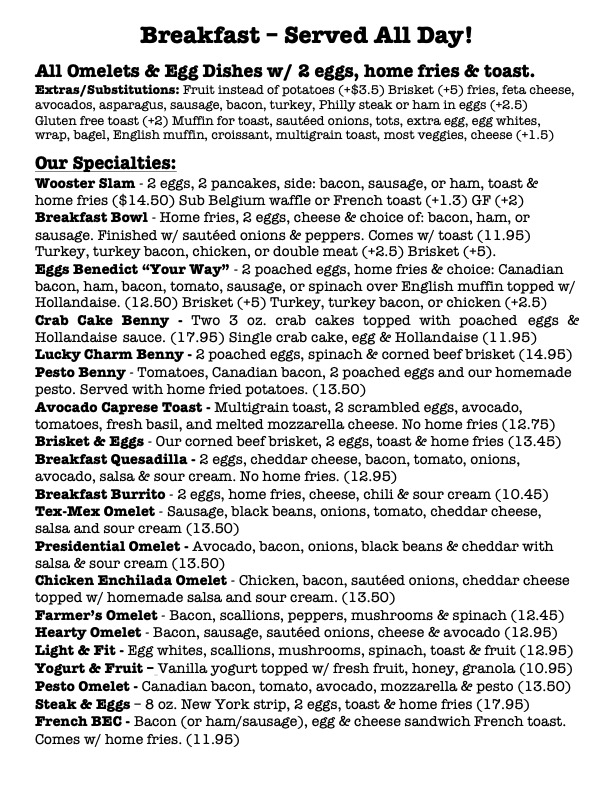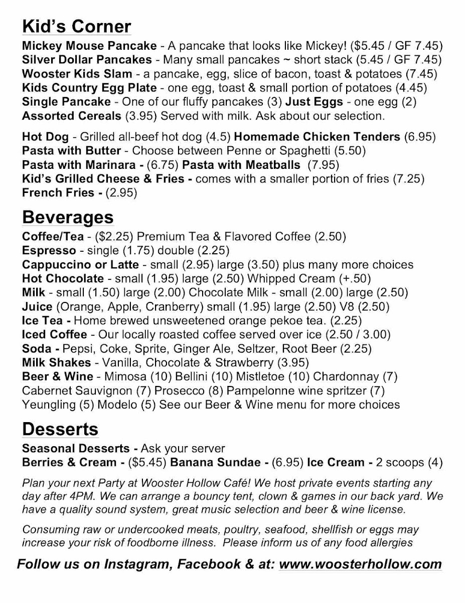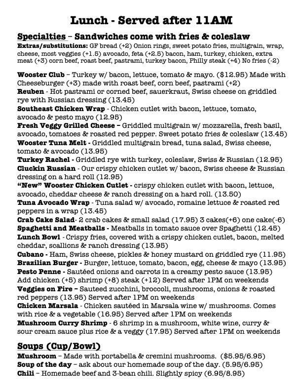 If you're looking for a cozy spot to enjoy a delicious meal, the Wooster Hollow Cafe Menu has something for everyone. Located at 659 Danbury Rd, Ridgefield, CT, this charming cafe offers a mix of comfort foods and fresh ingredients, making it a go-to destination for breakfast, lunch, or dinner. Whether you're in the mood for a warm cup of coffee paired with a homemade pastry or a hearty sandwich, you'll find plenty of options to satisfy your cravings. The menu features a variety of dishes that highlight seasonal flavors, with something to please every palate. From fresh salads to savory soups and flavorful entrees, each dish is thoughtfully prepared. The casual, welcoming atmosphere makes it the perfect spot to unwind with family and friends while enjoying a meal that feels just like home.
